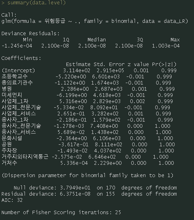 data.level <- glm(위험등급~., data=data_LR, family = binomial)